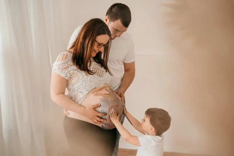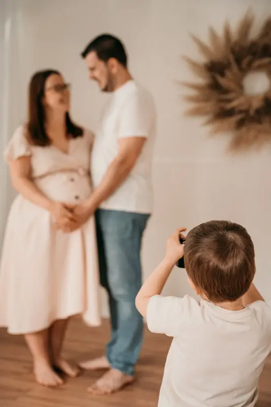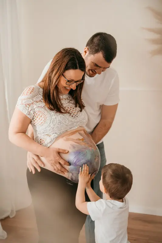 Für jede Menge Glücksgefühle kann dein Partner dich bei deinem Shooting begleiten oder sogar Geschwisterkinder dürfen dabei sind.